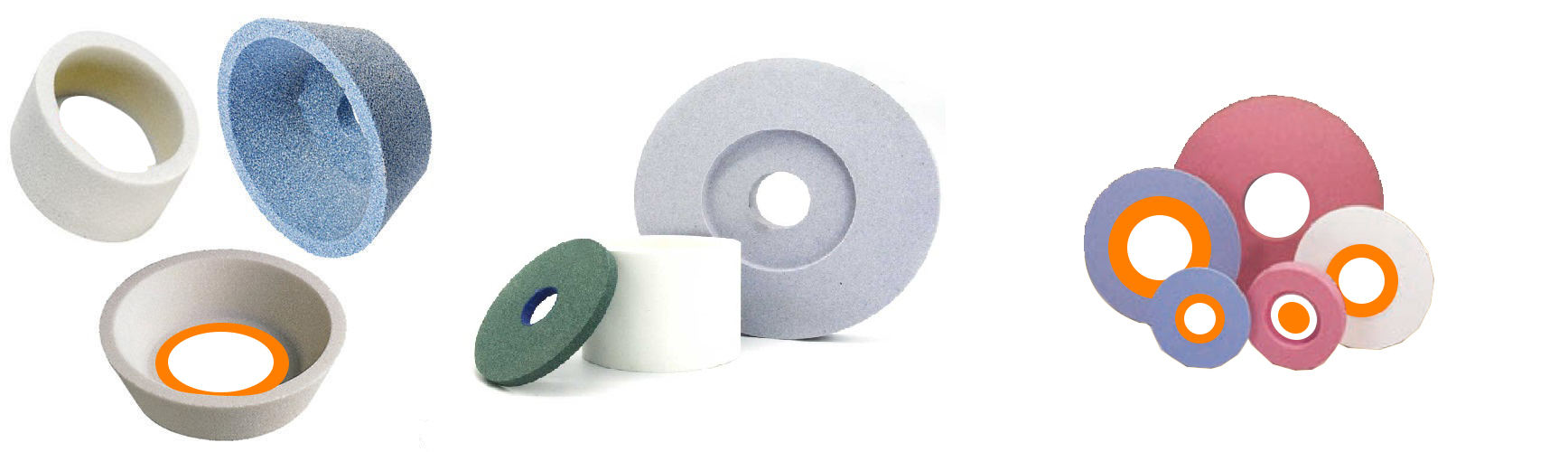We have best suitable grades tool room grinding wheels with Green silicon carbide, White alu.oxide, Pink Alu.oxide, Mono crystalline and Ceramic grains in different types and shapes as under suitable to customer applications.